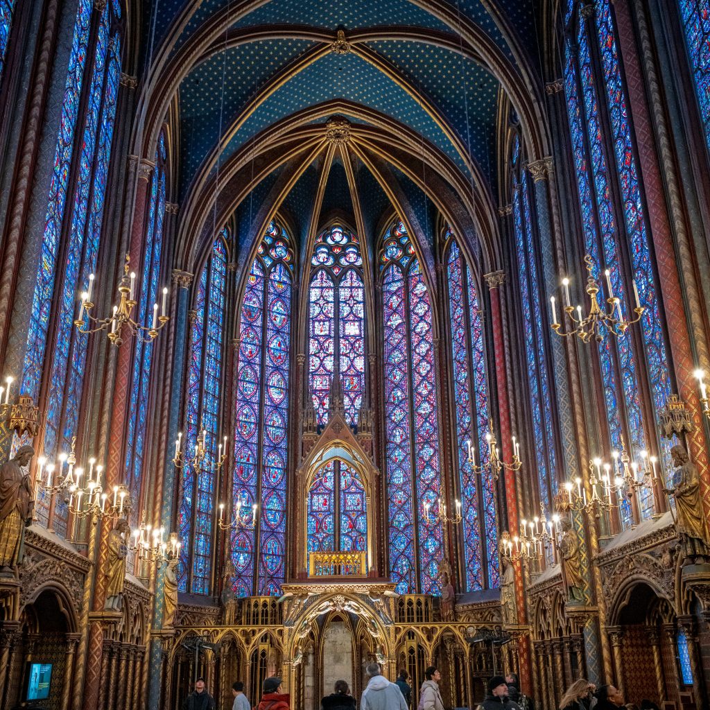Just steps from Notre-Dame, Sainte-Chapelle offers a completely different experience of sacred space. Built in the 13th century, the chapel is defined almost entirely by its stained glass, which transforms light into structure, colour, and narrative.